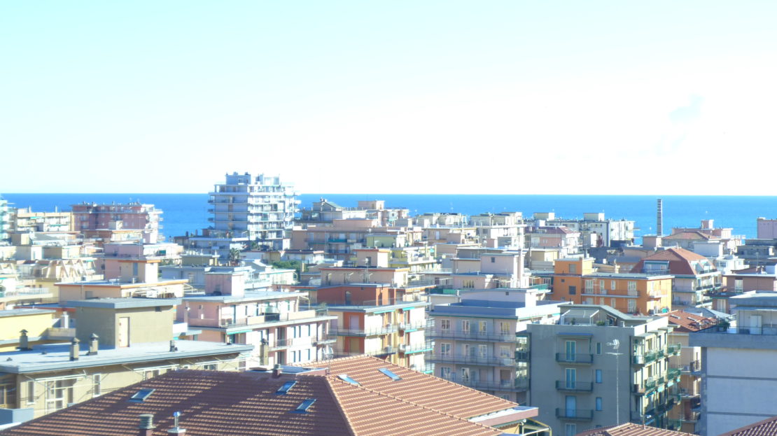 ALLOGGIO POSTO AL 7 PIANO IN PALAZZO DI 8 PIANI (ASCENSORE) CON AMPIA VISTA MARE ANGOLARE 50 MT CON INGRESSO TINELLO CON CUCINOTTO BALCONE ANTIBAGNO E BAGNO CAMERA DA LETTO CON BALCONE E AMPIA DISPENSA SGABUZZINO ,AL PIANO INTERRATO UNA CANTINA